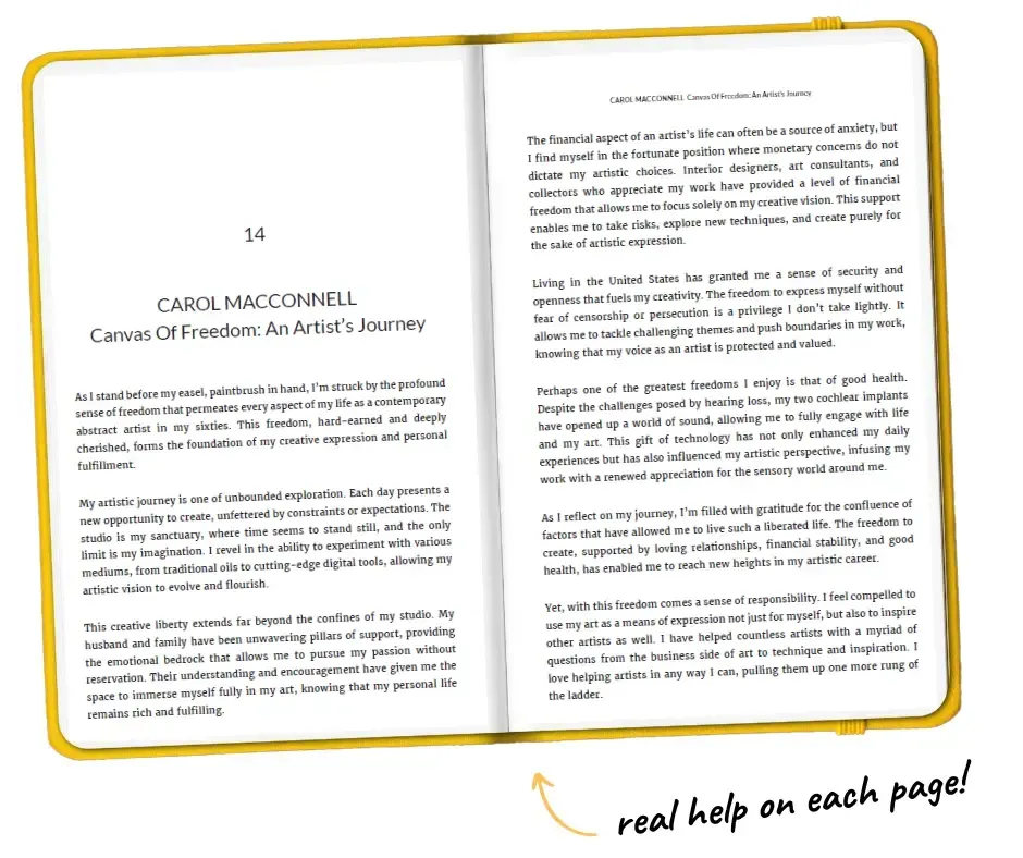 In this transformative chapter of The Creative Lifebook™ Series, internationally collected artist Carol MacConnell invites you into the messy, beautiful, brush-stroked journey of liberation — where art becomes the language of healing, and expression becomes the key to freedom.